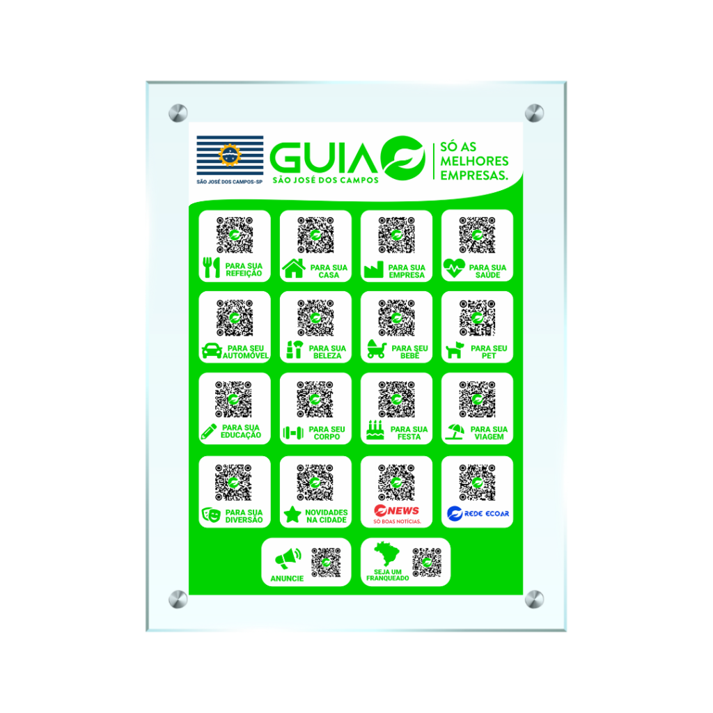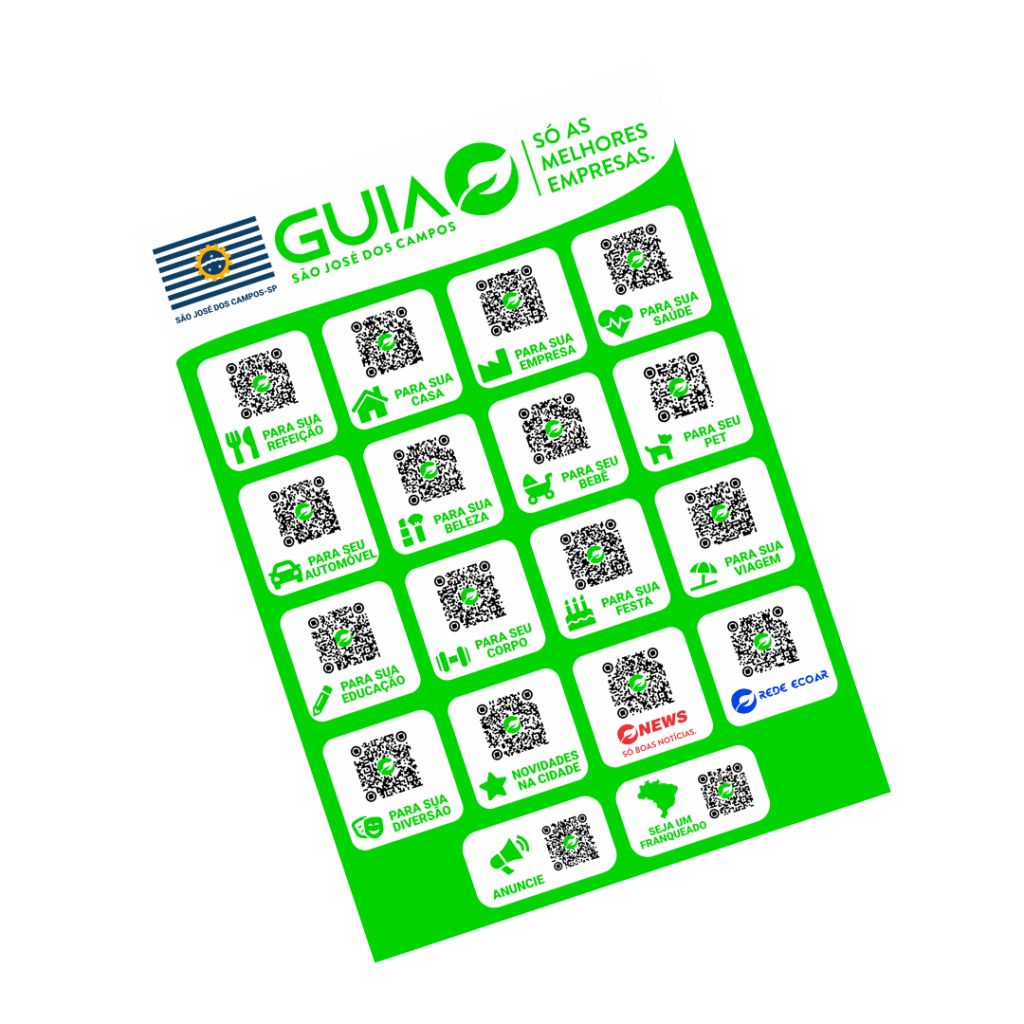 Através do GUIA ECOAR, sua empresa chega diretamente às residências por meio de um prático imã de geladeira. Os clientes podem explorar as categorias da lista através de um QR Code, proporcionando uma experiência conveniente e interativa.